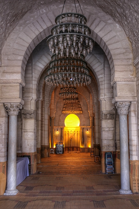 Das Gewölbe der Großen Moschee von Sousse wird zum Teil von antiken Säulen aus Ausgrabungsstätten in der Umgebung gestützt ...