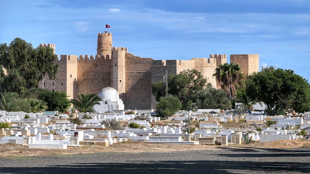 Unmittelbar hinter dem Sidi El Mezri Friedhof liegt der Ribat von Monastir ...
