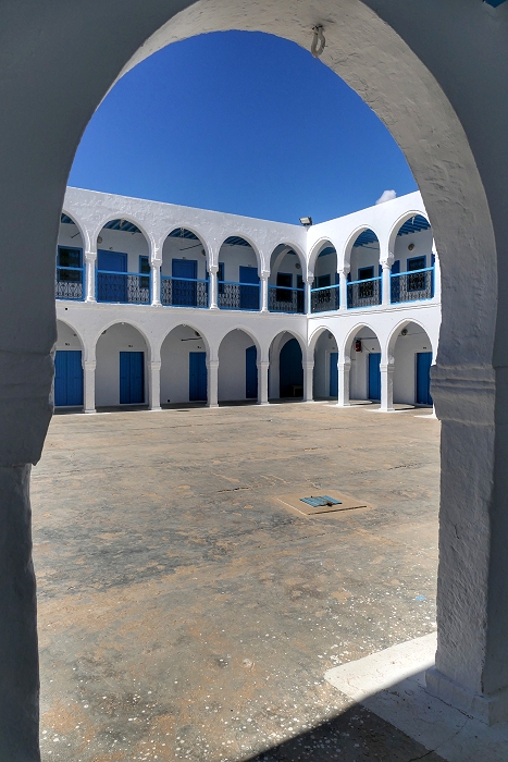 Gegenüber der Synagoge La Ghriba liegt eine Herberge, in der die Pilger unterkommen können, die vor allem um die Zeit des jüdischen Passahfestes anreisen ...