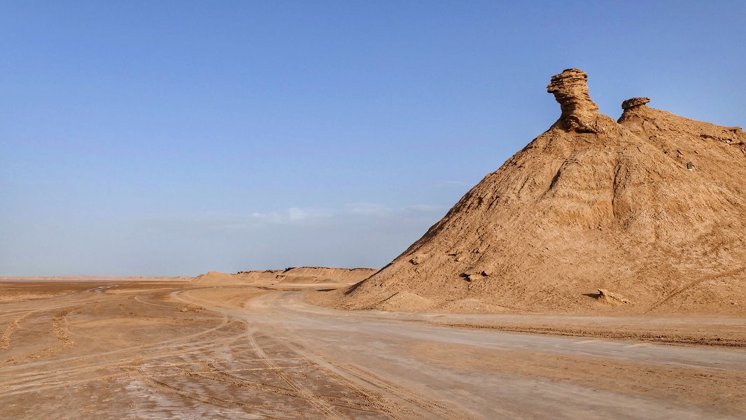 Am Südrand des Salzsees Chott el-Gharsa liegt der markante Felsen Ong Jmal ...