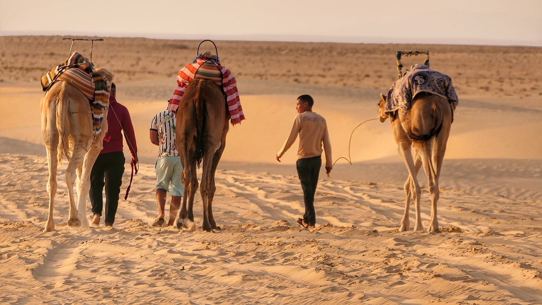 Wo größere Ansammlungen von Touristen zusammenkommen, sind auch die Kameltreiber mit ihren Tieren nicht weit ...