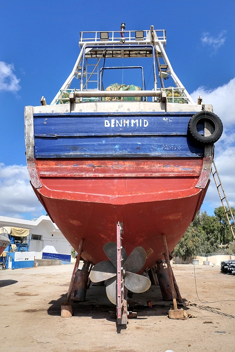 Die Boote werden in der Hafenwerft von Kelibia lediglich mittels einfacher Holzstützen aufgebockt ...