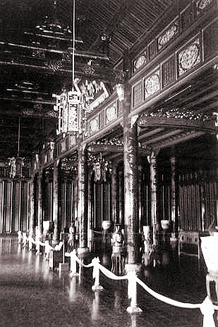 Achzig rot lackierte Säulen tragen das Dach der Audienzhalle ...