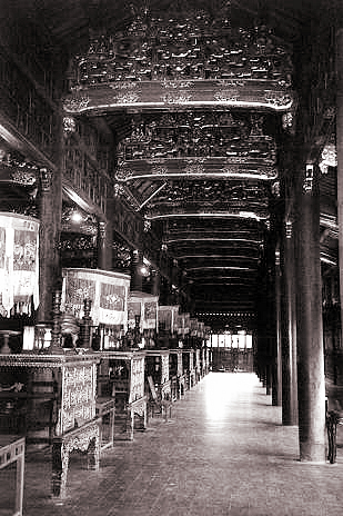 Im diffusen Dämmerlicht des Tempels reihen sich zehn Altäre mit den Ahnentafeln der Herrscher und ihrer Gemahlinnen aneinander ...