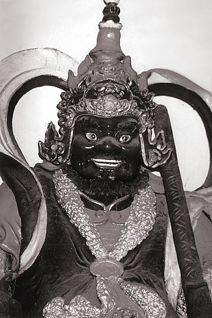Durch einen Torbogen, der von sechs bunt bemalten Wächterfiguren flankiert wird, gelangt der Besucher zum Hauptheiligtum der Pagode ...