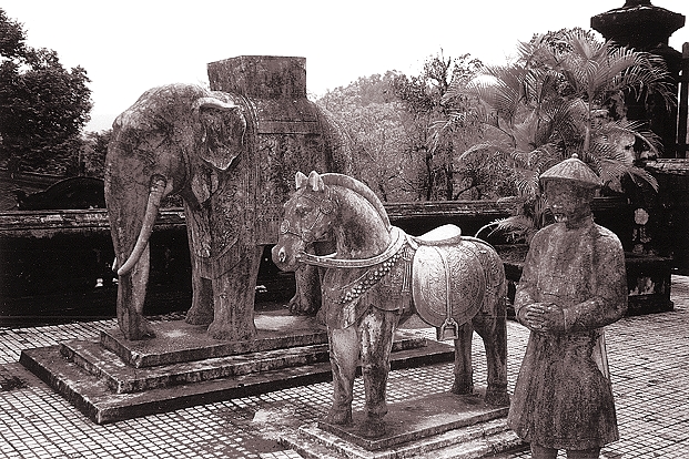 Statuen im Ehrenhof der Grabanlage von Kaiser Khai Dinh ...