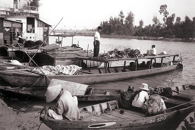 Ruhig dümpeln die Kähne der Fischer im Hafenbecken von Hoi An vor sich hin ...