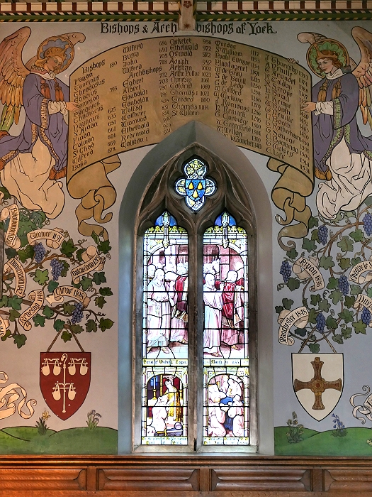 All Saints, Helmsley: An den Wänden des Kirchenschiffs sind die 'Stammbäume' der Bischöfe und Erzbischöfe von York dargestellt ...