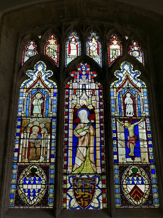 Das Marmion Fenster in der Kirche St Nicholas West Tanfield enthält alle Reste an mittelaterlichem Glas, ergänzt durch Glas des 19. Jahrhunderts ...