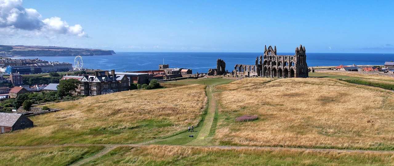 Die Ruine der Abtei Whitby liegt unmittelbar an der Küste auf einer Anhöhe oberhalb der Stadt und der Mündung des River Esk ... | |