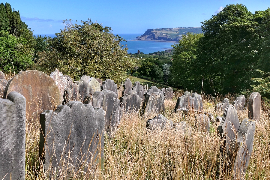 Blick von Old St Stephen's in Fylingdales auf Robin Hood's Bay ...