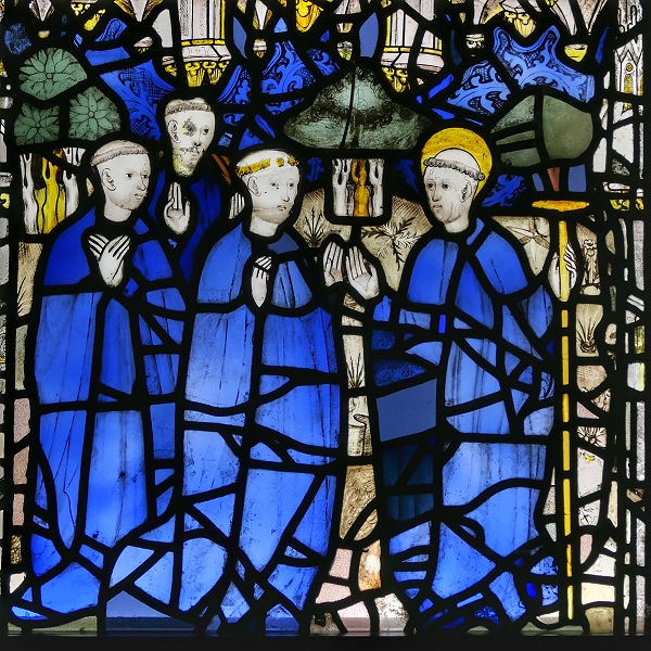York Minster: Das Cuthbert-Fenster von ca.1440 bestand ursprünglich aus 70 Glasfeldern, von denen noch 64 erhalten sind ...