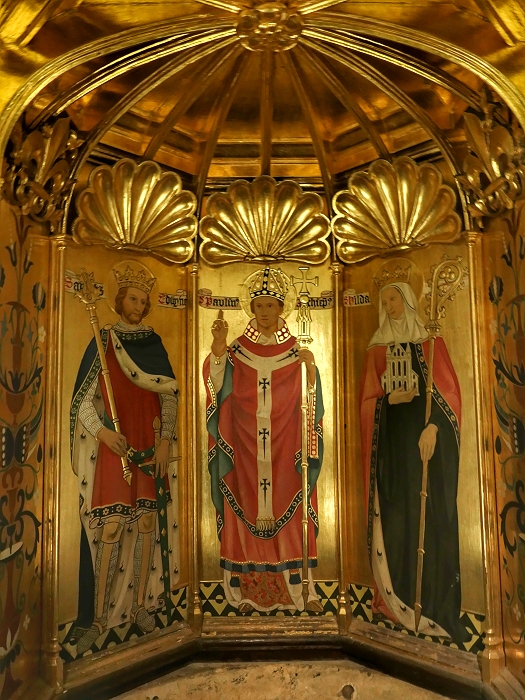 York Minster: Die von Sir Ninian Comper gestaltete Haube des Taufbrunnens erinnert an König Edwins Taufe im Jahre 627 in der ersten sächsischen Kathedrale von York ...