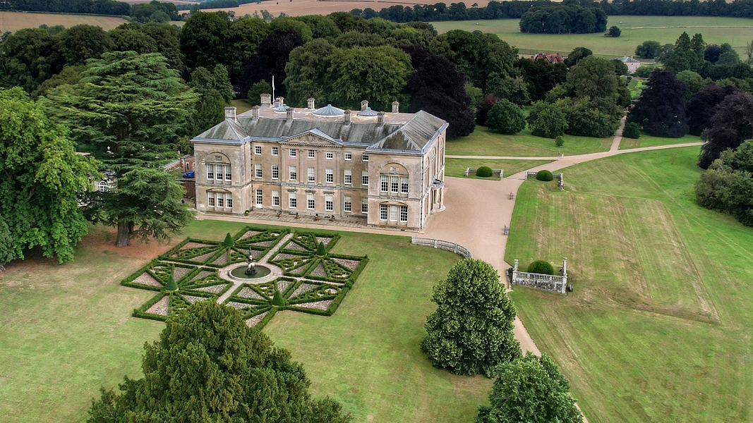 Sledmere House aus dem 18. Jahrhundert (nach einem Brand 1911 wieder aufgebaut), Stammsitz der Familie Sykes ...