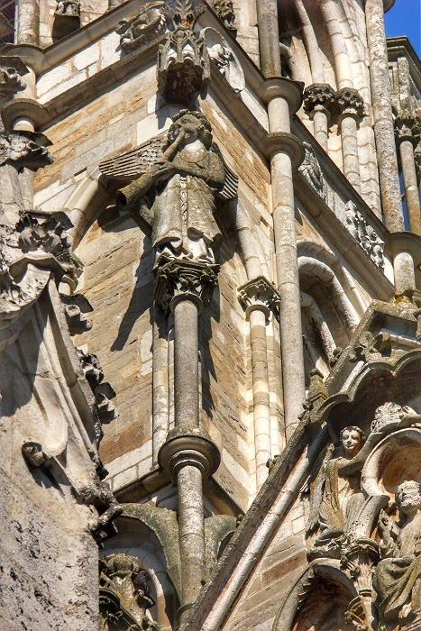 Filigraner Skulpturenschmuck am Turm der Kirche von St. Père bei Vézelay ...