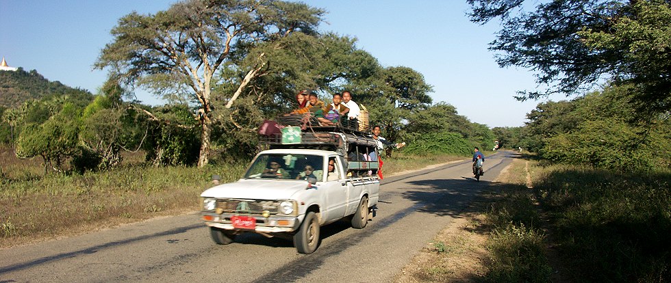 Öffentlicher Nahverkehr in Myanmar: in Ermangelung von Bussen findet der Transport auf der Ladefläche von Pickups oder LKWs statt ... | |