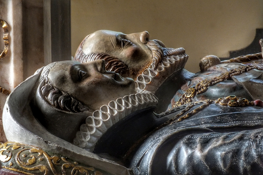 Die Skulpturen am Grabmal für Sir Francis und Lady Catherine Knollys gehören zu den schönsten des Landes ...