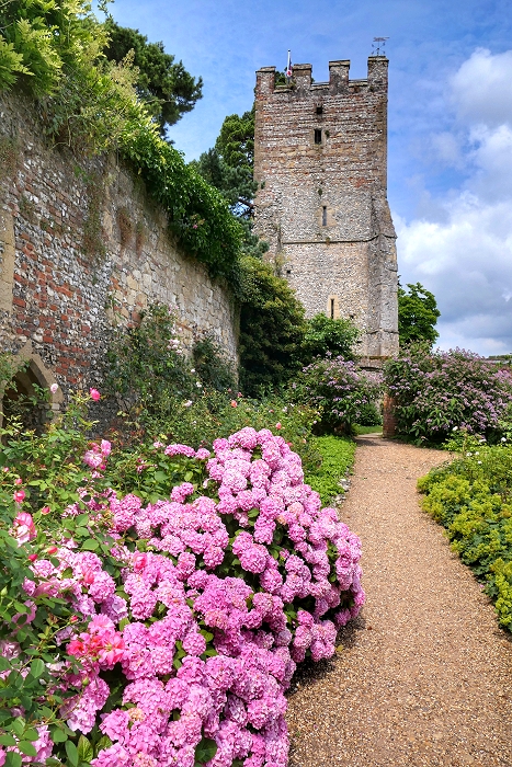 Hortensien und Rosen zieren heute die ehemaligen Schutzmauern von Greys Court ...