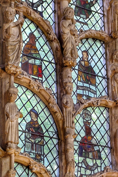 Das Besondere des 'Jesse-Fensters' liegt darin, dass die Propheten und Könige des Alten Testaments nicht nur im Glas sondern auch als Skulpturen im Maßwerk des Fensters dargestellt sind ...