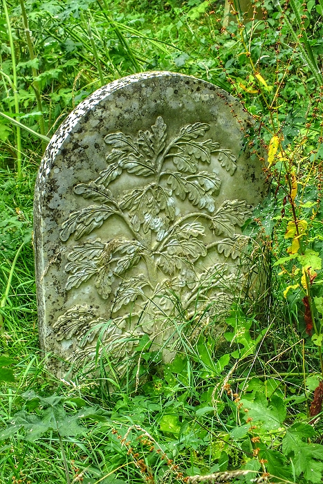 Grabstein mit schönen Eichenblättern auf dem Friedhof von Hartwell ...