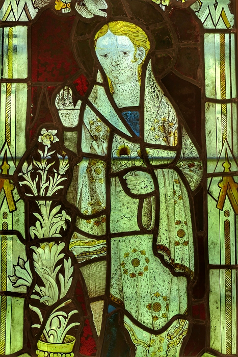 Lowndes-Stone Familienkapelle: Glasfenster mit einer Darstellung der Verkündigung Mariens (15. Jhdt.) ...