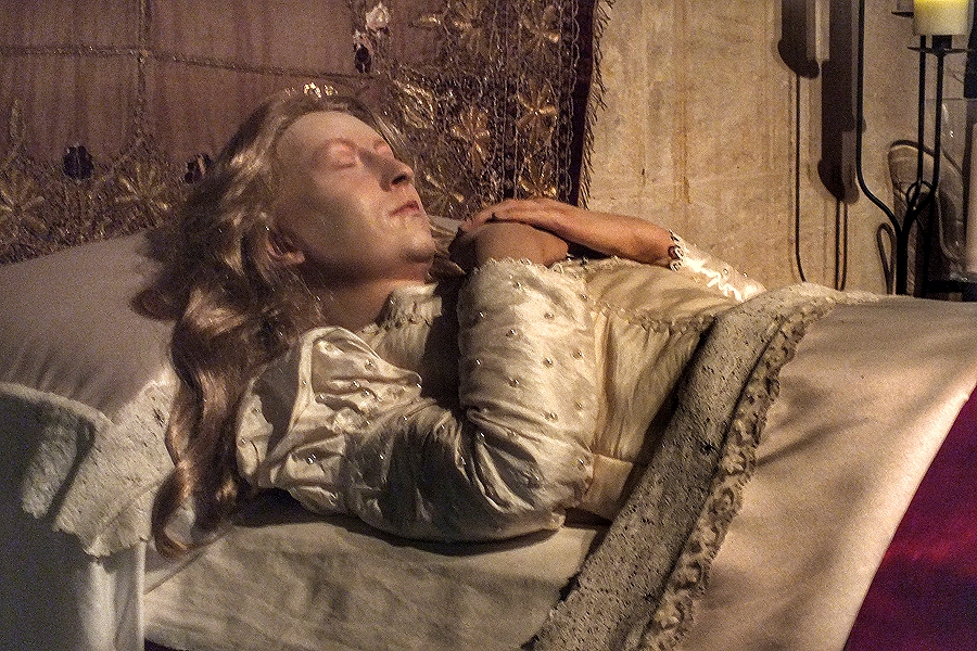 In einer Seitenkapelle von St Mary's hat man in typisch englischer Dramaturgie die Sterbestunde der Königin Katherine Parr nachgestellt ... | |