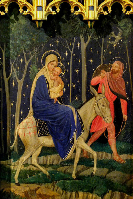 Flucht nach Ägypten: Altarretabel in der Kirche von Miserden ...