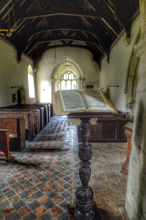 Recycling einmal ganz anders: Das Lesepult der Kirche in Eastleach Martin wurde aus einem Tischbein oder einem Bettpfosten des 16./17. Jhdts. (elisabethanisch) angefertigt ...