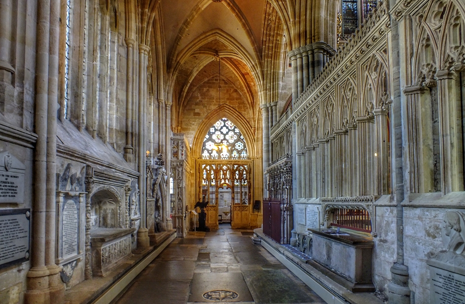 Nördliches Chorseitenschiff der Kathedrale von Exeter (13. Jhdt.) ...