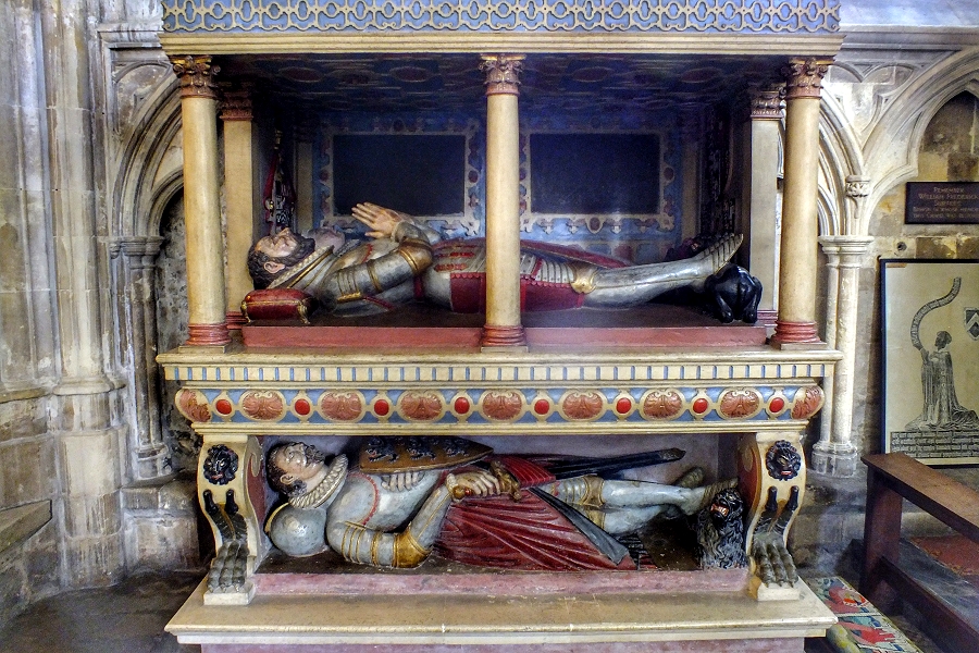 Grabmal für Sir Gawen und Lady Carew aus dem Jahre 1589; darunter ihr Neffe Sir Peter Carew ...