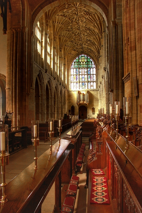 Das Innere der Abteikirche Sherborne ist schönstes Perpendicular, englische Spätgotik ...