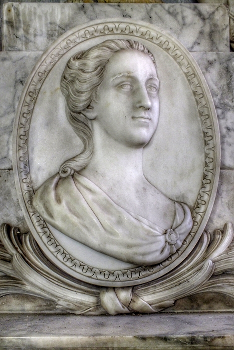 Wimpole Church: Grabmal für Catherine Freman, Frau von Charles Yorke, dem 2. Sohn des 1. Grafen Philip von Hardwicke, die im Jahre 1759 im Alter von gerade einmal 22 Jahren starb, nachdem sie 3 Kindern das Leben geschenkt hatte ...