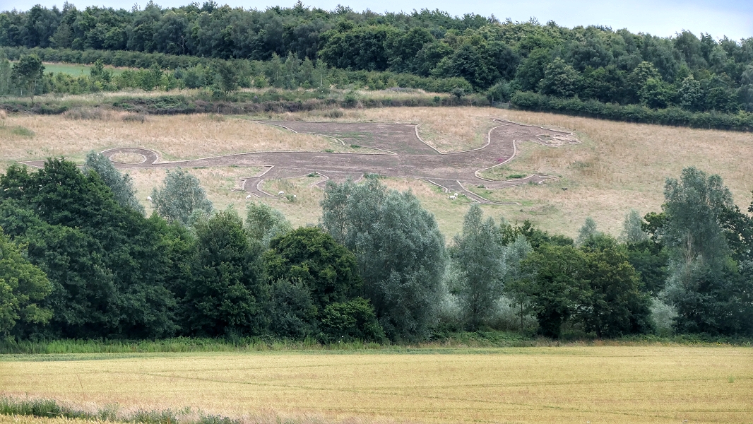 Hügelfigur in Form eines Drachen bei Bures, der einer Legende zufolge das Land um das Dorf verwüstete, bis sich nach mehreren vergeblichen Versuchen Einzelner ihn zu töten alle Männer der Grafschaft zusammentaten und ihn vertrieben ... | |