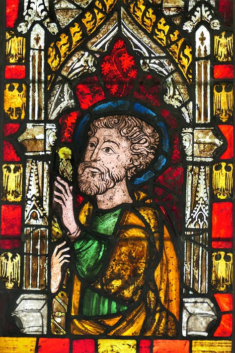 All Saints, Icklingham: Fenster des 14. Jahrhunderts mit der Darstellung eines Heiligen ...