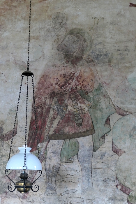 Fresko mit einer Darstellung des heiligen Christophorus in der Kirche St Mary the Virgin, Layer Marney (spätes 15. Jhdt.) ...