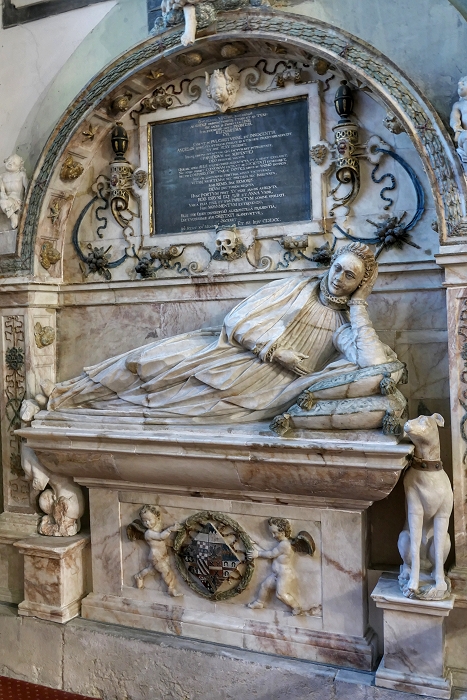 Hawstead All Saints: Grabmal für Elizabeth Drury von Hawstead Place, die im Jahre 1611, 4 Jahre vor ihrem Vater Sir Robert Drury, im Alter von nur 14 Jahren starb ...