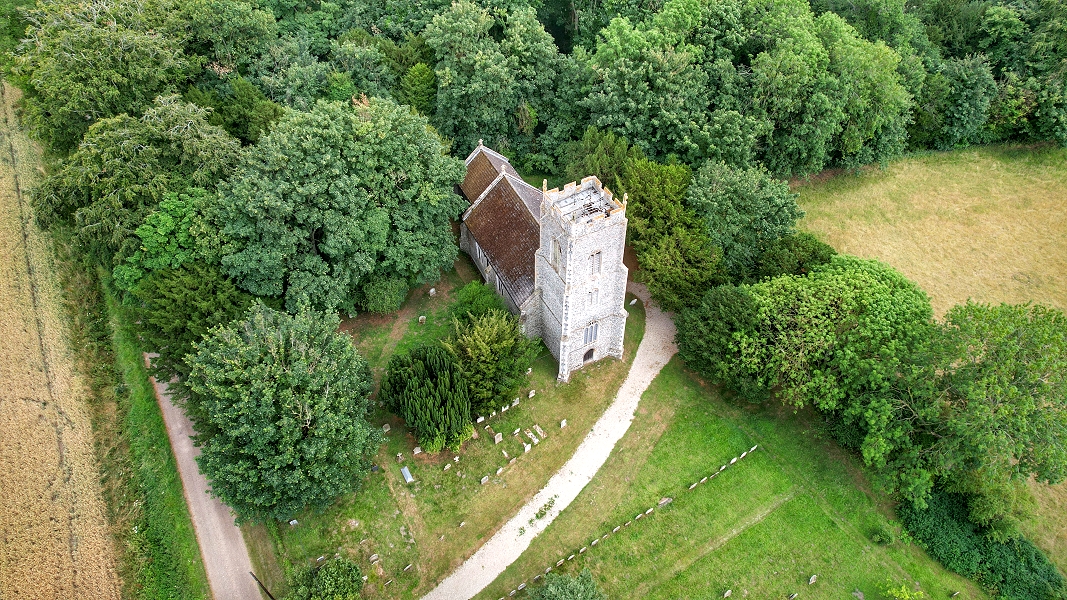 Die Kirche Saints Peter & Paul von Barnham Broom liegt nördlich der Ortschaft versteckt in einem kleinen Waldstück ...