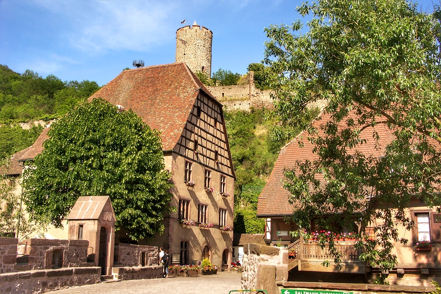 Kaysersberg: Pont fortifié und Burgruine aus der Zeit der Staufer (13. Jhdt.) ...