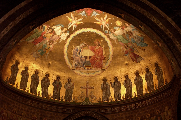 In der Kathedrale von Straßburg: Mosaik im byzantinischen Stil über dem Hauptaltar ...