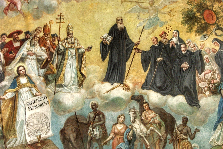 Deckengemälde im Schiff der Kirche von Ebersmünster: Verherrlichung des heiligen Benedikt (Detail) ...