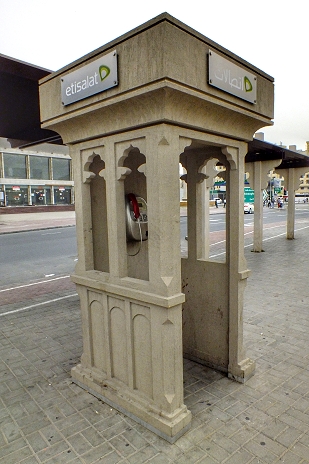 Dubai Al Shindagha: Telefonzelle der staatlichen Telefongesellschaft Etisalat in Form eines Windturms ...