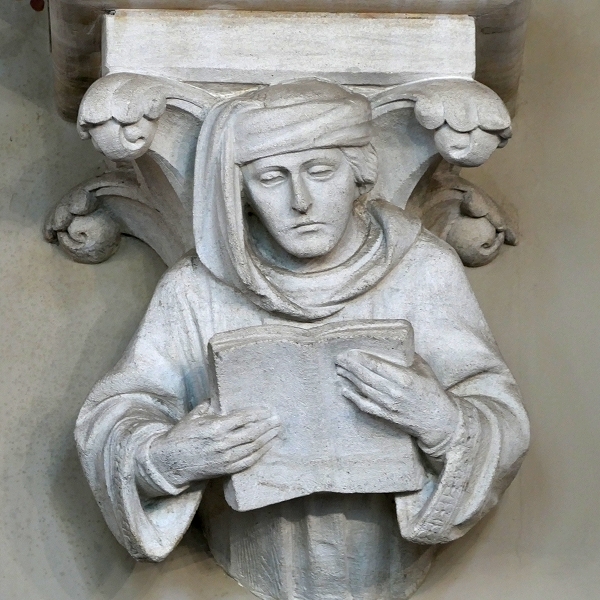 In der Halle von Knightshayes werden die Kragsteine, auf denen das Balkendach ruht, von figürlichen Darstellungen gestützt ...