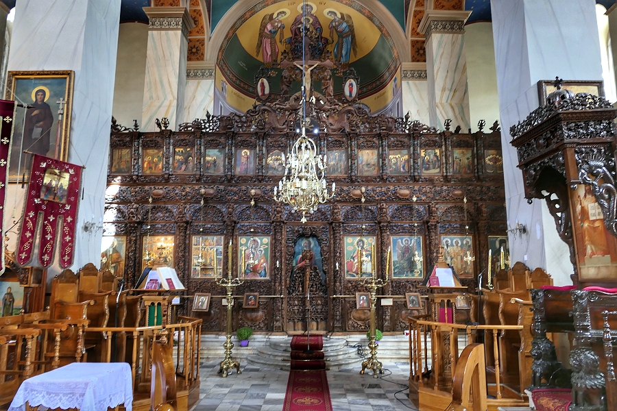 Holzgeschnitzte Ikonostase in der Kirche Agios Nikolaos in Galaxidi ...