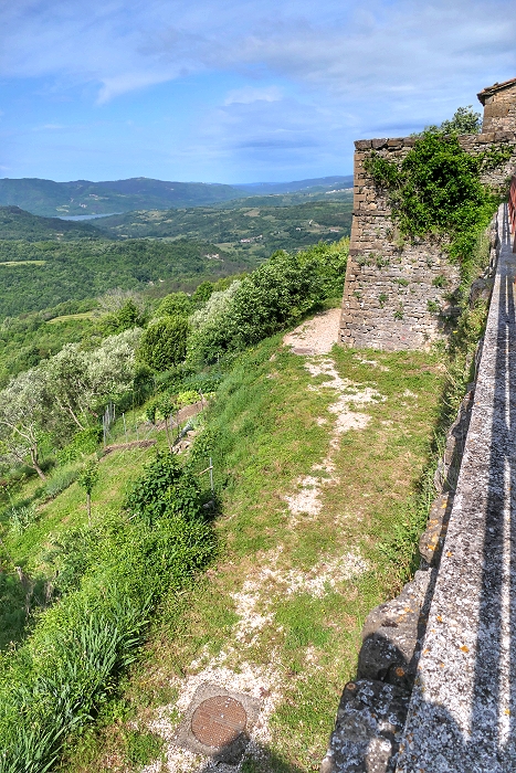 Von der Stadtmauer am Hauptplatz hat man an einem klaren Tag einen wunderbaren Blick über die Umgebung von Draguć ...