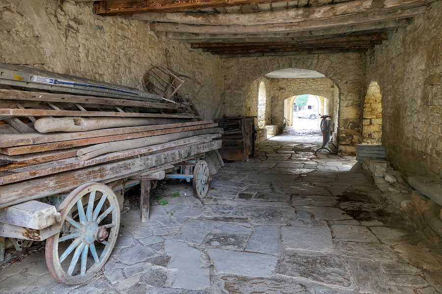 Ein Durchgang im Nordwesten von Draguć war einst Teil der Burg und führt heute zu der kleinen Kirche St. Rochus ...