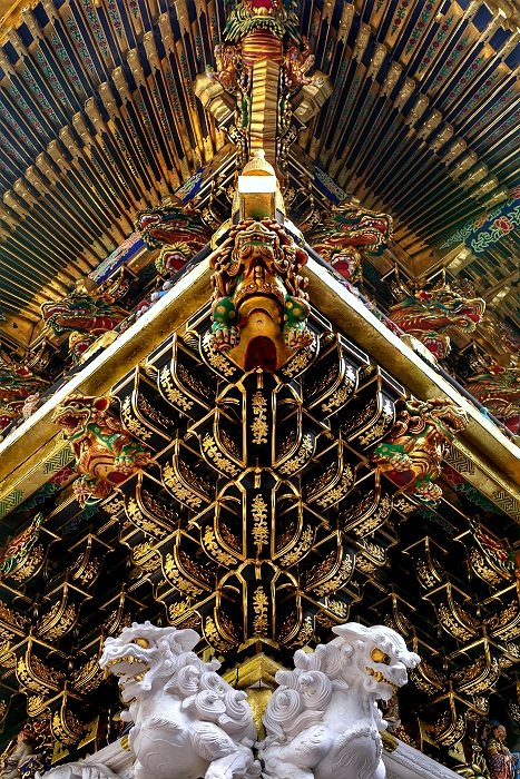Das Tor des Sonnenlichts ist überreich mit Lackarbeiten, Schnitzwerk, und Blattgold verziert ...