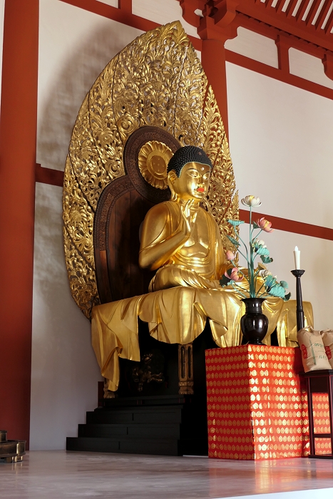 Statue des Shakyamuni-Buddha ('der Weise aus dem Geschlecht der Shakya') aus dem Jahre 1811 in der Goldenen Halle des Kofukuji Tempels ...