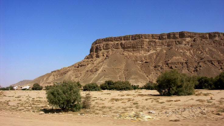 Das Wadi Hadramaut wird auf beiden Seiten von langgestreckten Tafelbergen begrenzt ...