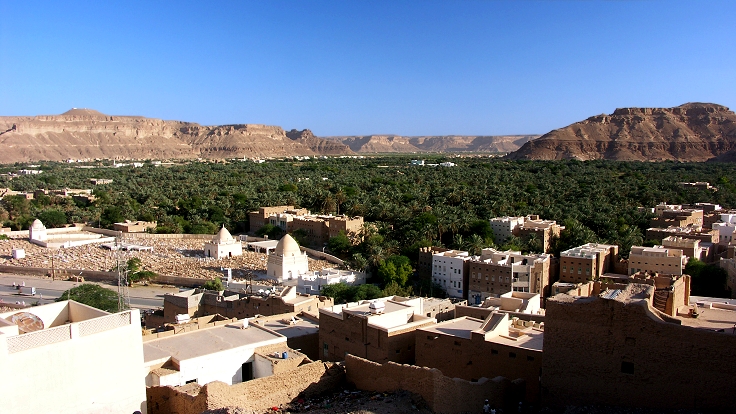 In Tarim erhält man den besten Überblick, wenn man auf einen Felsen oberhalb der Stadt hinaufsteigt ...
