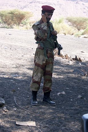 Die Soldaten der Militäreskorte sollen den Reisenden ein Gefühl der Sicherheit vermitteln ...
